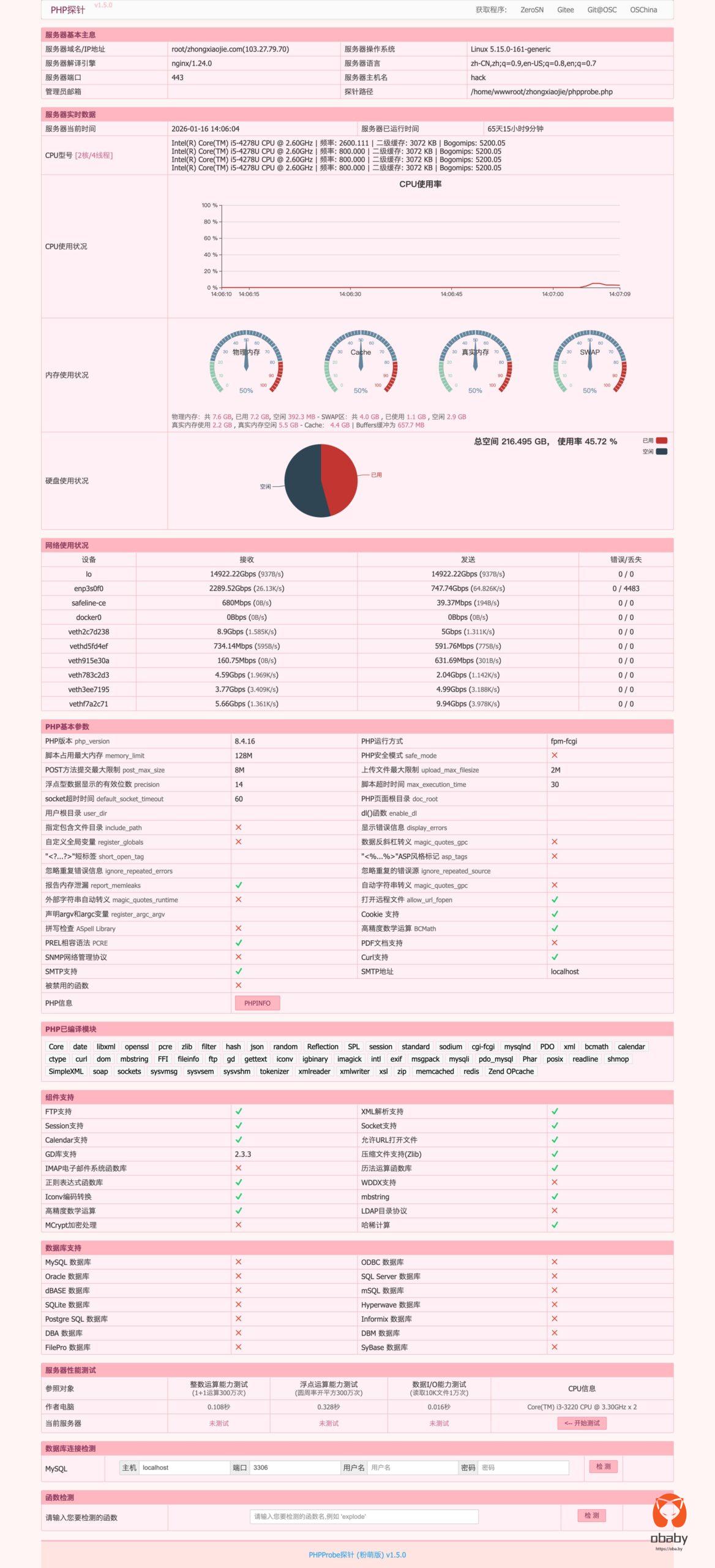 一个功能强大的 PHP 服务器环境探针工具,支持 PHP 7.x 和 PHP 8.x 全系列版本。