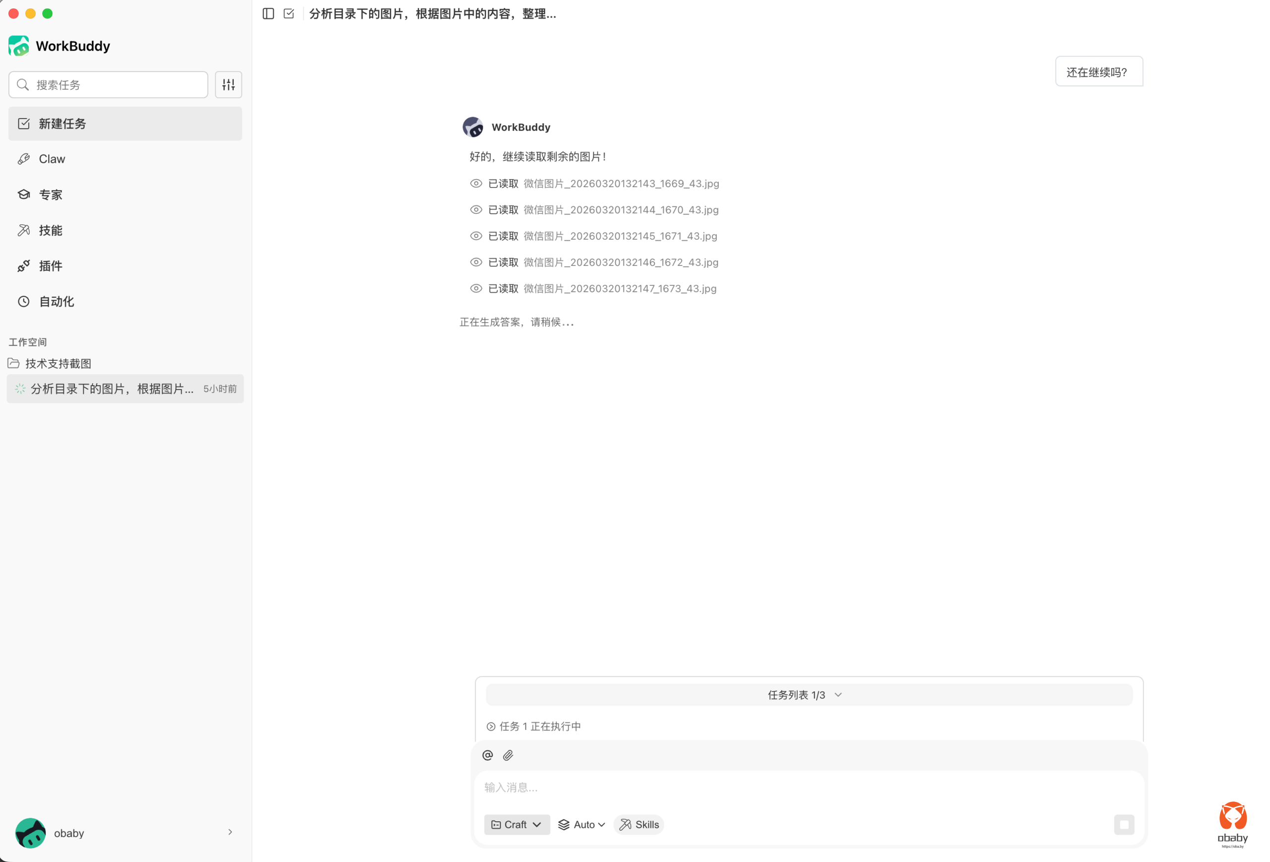 上午让workbuddy给整理汇总图片里的运维日志,结果卡住了之后,一天都没进展。