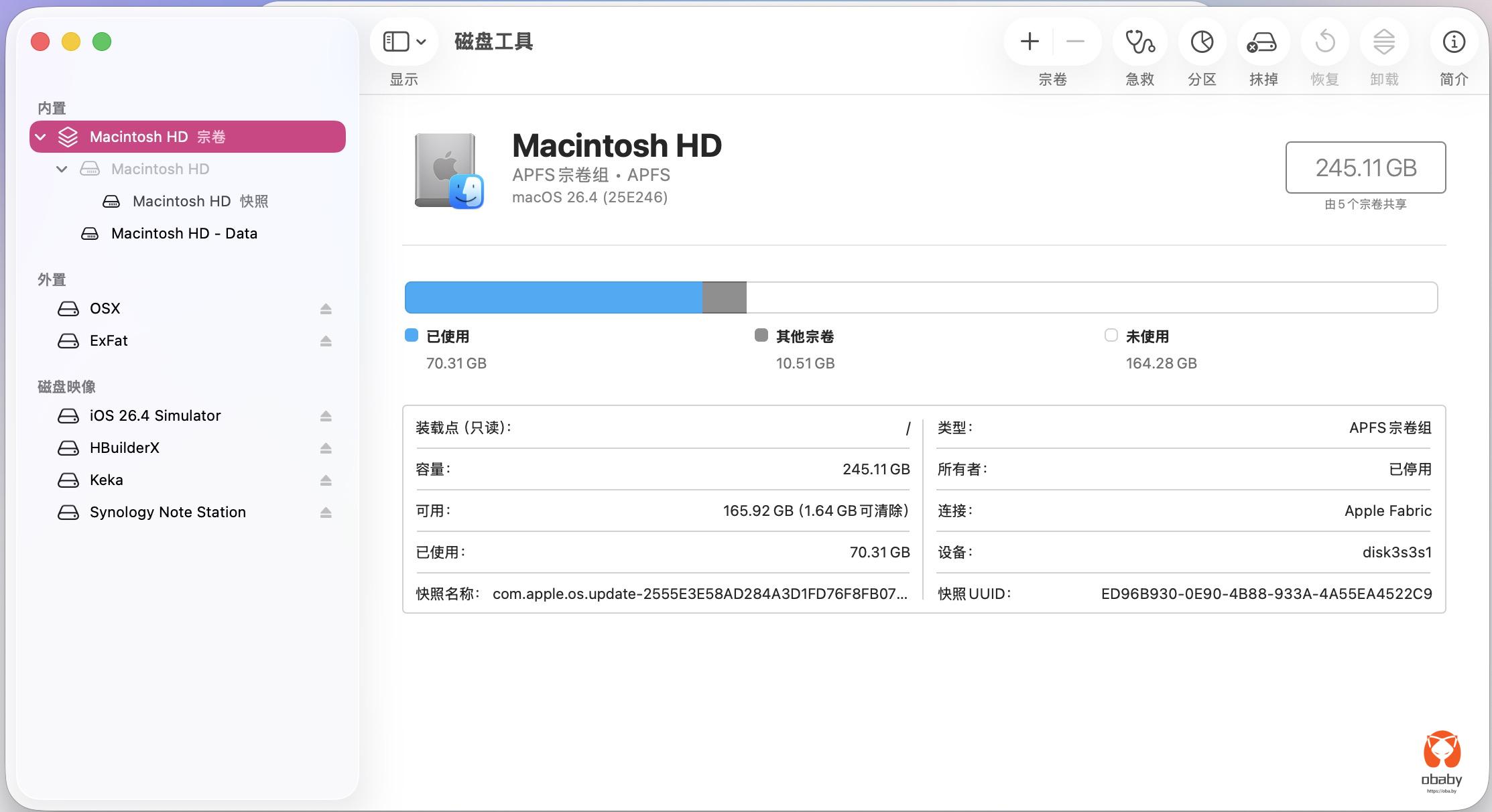 装完系统,安装价格必须的工具,就差不多占用了一半的磁盘空间。之前还给硬盘分了两个分区,现在看来,分不分的也没啥大用,就这点片空间,也不够干啥的。能往移动硬盘放的,就放移动硬盘把。现在常用的工具比之前也少了很多,只需要一个cursor、hbuilder 、xcode 之类的东西就够了,剩下的东西暂时也不需要安装,等哪天用到了再说吧。